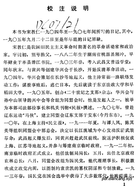 宋教仁日记 (宋教仁著;湖南省哲学社会科学研究所古代近代史研究室校注) (pdf.diancang.xyz).pdf: