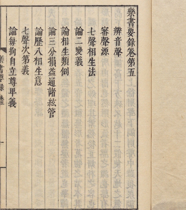 《乐书要录》所佚存五、六、七三卷,主要论述了各种声律问题。卷五就在各种生律方法进行详解。其中包括“辨音声”、“审声源”、“论七声相生法”、“论二变义”、“论相生类例”、“论三分损益通诸弦管”、“论历八相生意”、“论七声次第义”、“论每均自立尊卑义”、“叙自古书传论声义”、“乐谱”等章节。论述了有关声音的起源;古代的生律方法;二变音(即变徵、变宫)的作用;各种乐器上的三分损益律的自然属性;隔八相生产生的原因;音律的排列顺序和使用左旋与右旋创造音阶的方法;音的高低循环关系;五声、六律、七音和乐器乐类的“八音”的具体内容;以及五声理论同周易理论的关系等内容。作者以道家思想作指导,把声音的产生同气、道相联系,认为声音是在无声中产生的。说到:“华谭论曰:夫无声者五音之祖,无形者万物之君”。七声则是出自自然之理,非由人所造。因此二变音是音乐中必不可少的音声。“五声互变经纬相成,未有不用变声能成音调者也。”有清音则生浊音,有浊音则生清音,这就是宫生徵、徵生商的原理所在。作者用颜色渐变的规律和特点形象地比喻了月份交替和七声相变的关系。认为音高而尊,音低而卑。并引用汉书的说法,认为商为言章,角为触,宫为中,徵为祉,羽为宇。宫又为君,宫音调则麒麟在郊;商为臣,商音调则苍龙在沼;徵音事,徵音调则尊贵有别,有徵音乱则哀;羽为物,羽乱则危。与此同时又认为,声音的高低关系是随着不同的均而变化的,没有固定的格式。“清浊者一弦之缓急也。无尊卑之差。宫商者五间之唱和也,有君臣之别。唱不必浊,和不必清,尊卑系于宫商。不由清浊。”