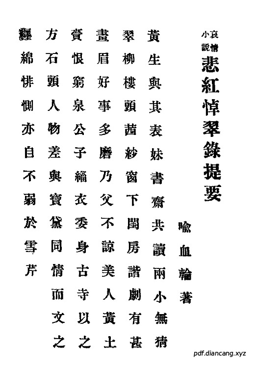 哀情小说 悲红悼翠录 (喻血轮著) (pdf.diancang.xyz).pdf: