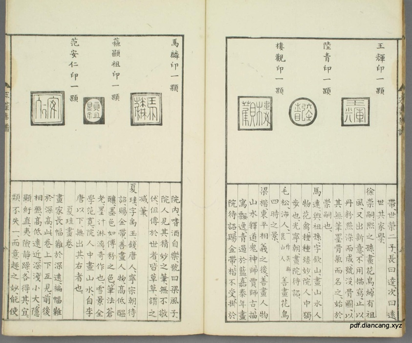 该书兼具著录、校勘与文献价值,既保留了中日文化交流背景下的汉画收藏与研究资料,也为后世考证唐、宋、元三代画人真迹、印章及艺术生平提供了重要参考。