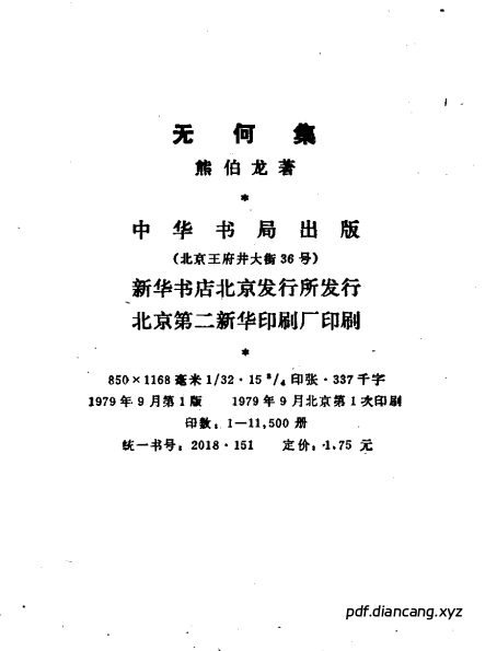 无何集 ((清)熊伯龙著) (pdf.diancang.xyz).pdf: