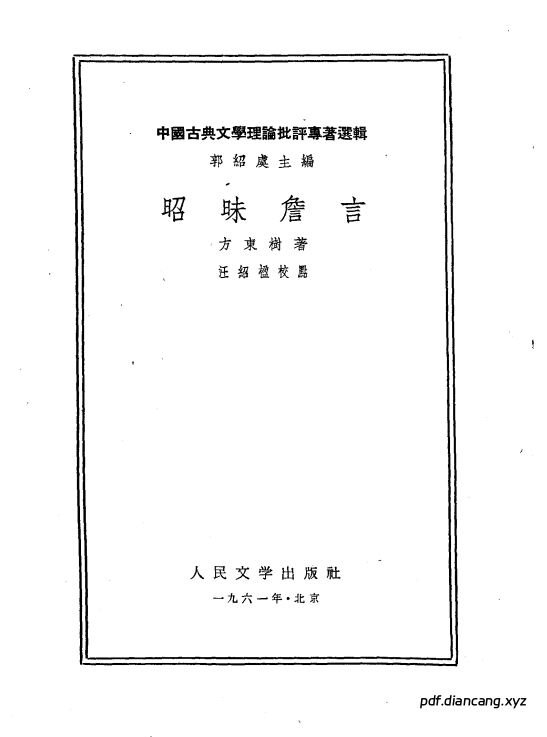 昭昧詹言 21卷 ((清)方东树著;汪绍楹校点) (pdf.diancang.xyz).pdf:
