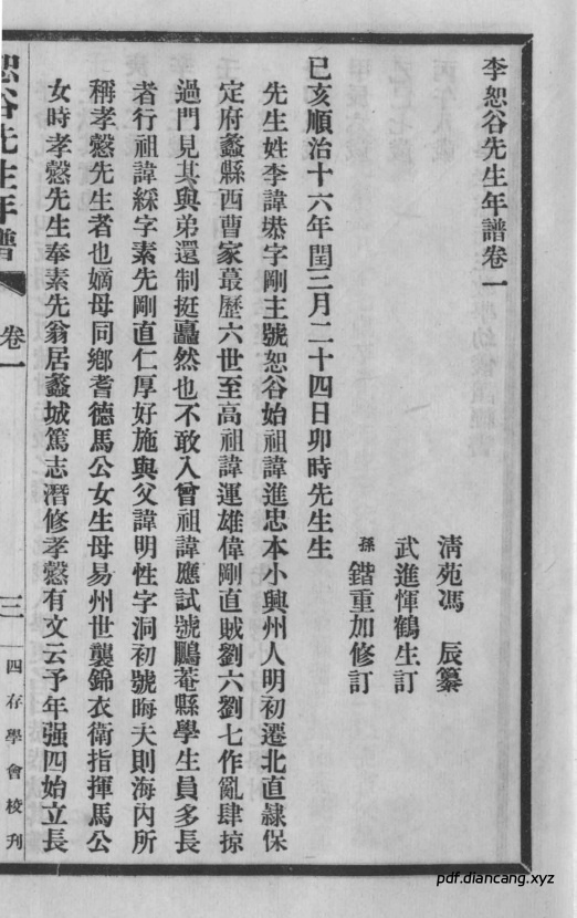 颜李遗著 李恕谷先生年谱 卷1-3 ((民国)颜元,(民国)李塨撰) (pdf.diancang.xyz).pdf: