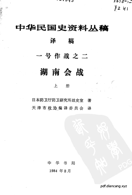 中华民国史资料丛稿 译稿 一号作战之二 湖南会战(上册) (日本防卫厅防卫研究所战史室著,天津市政协编译委员会译) (pdf.diancang.xyz).pdf: