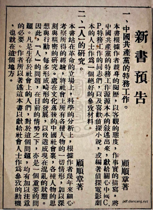 - 历史影响:该书泄露中共特科核心机密,对早期中共地下工作造成严重破坏,是研究民国特工史与顾顺章叛变事件的重要史料。