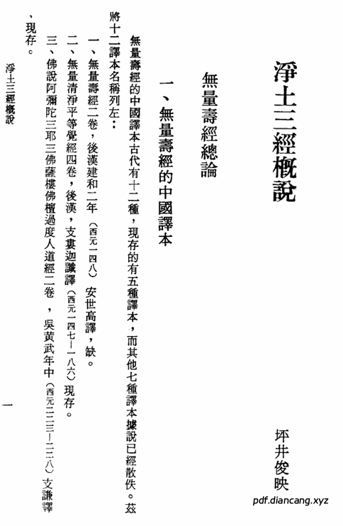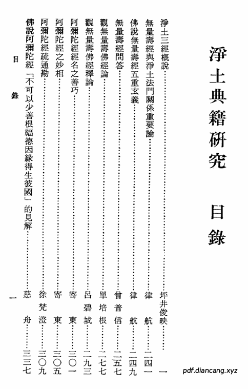 - 《净土三经概说》(坪井俊映):总述《无量寿经》《观无量寿佛经》《阿弥陀经》的核心内容、历史地位与相互关系,为全书奠定基础。