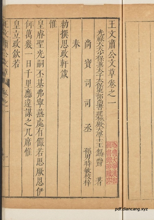 王文肃公文草14卷.明.王锡爵撰.王时敏校.明万历43年王时敏刊本(pdf.diancang.xyz).pdf: