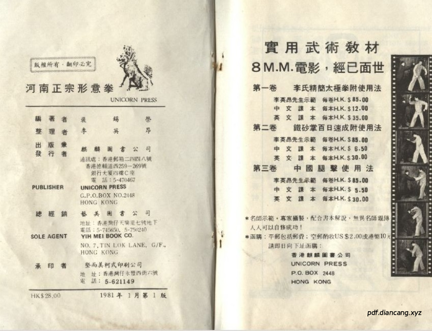 - 出版:1981 年,32 开,系统阐述河南心意拳(形意拳)的源流、拳理、功法、套路、实战应用。