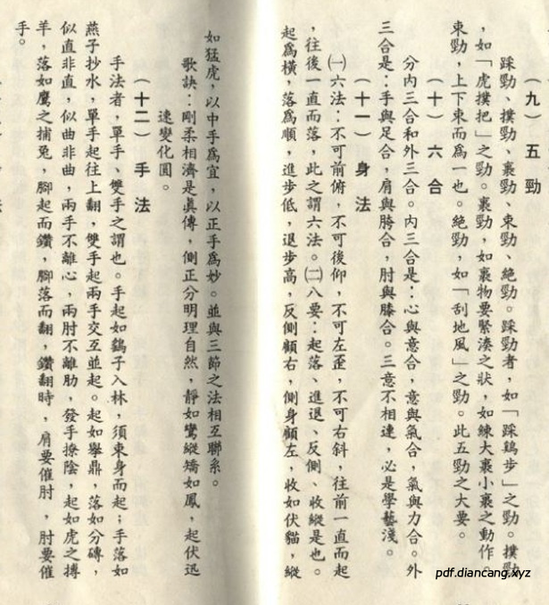 - 核心定位:内家拳,古称 “守洞尘技”,以心意为体、六合为规,强调心与意、意与气、气与力、肩与胯、肘与膝、手与足的六合合一。