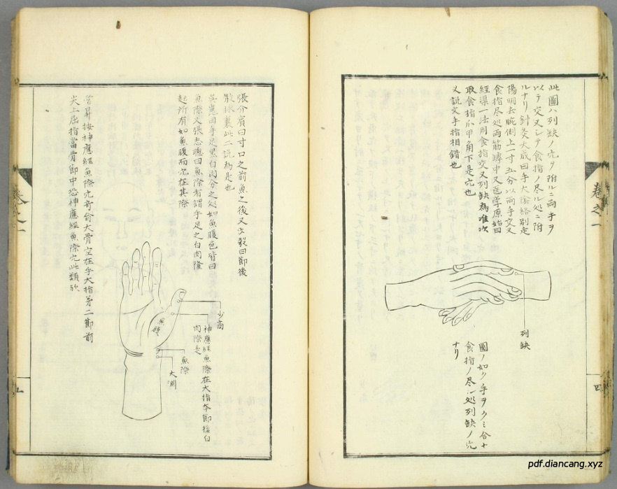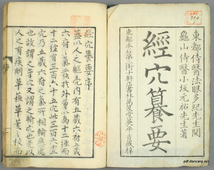 针灸经穴专著。5卷。日本小坂元祐 (营升) 汇辑。卷1~3,述十二经、奇经八脉循行及腧穴;卷4述内景、七冲门;卷5述周身部位、骨骼之名称、位置,一穴数名者、同名穴、阿是穴、人身之四关、四海、反关脉、神门脉等。书中发挥十二经及365穴之条理,悉本《灵枢》、《素问》、《针灸甲乙经》诸书,附图多帧,引用书目多达90余种,其征详博。因而丹波元简序云: “世颛针灸者,能读是编而明明堂之义,莫有孔穴乖舛之弊,若针若灸,沉疴痼疾,草苏草荄之枝所不及,有奏效于猝霍之间也”。可见此书之价值。今有日本文化七年(1810年)京都青云堂刻本(即《聿修堂医学丛书》本)、《皇汉医学丛书》本等。建国后有排印本。