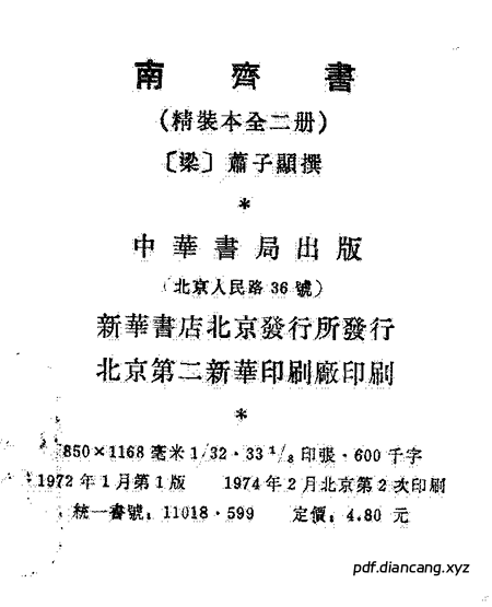 南齐书 全二册齐 中华书局1972点校本全集 (萧子显) (pdf.diancang.xyz).pdf: