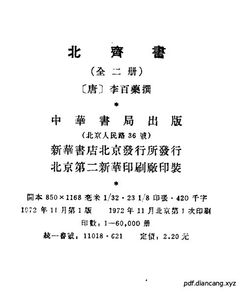 北齐书 全二册齐 中华书局1972点校本全集 (李百药) (pdf.diancang.xyz).pdf: