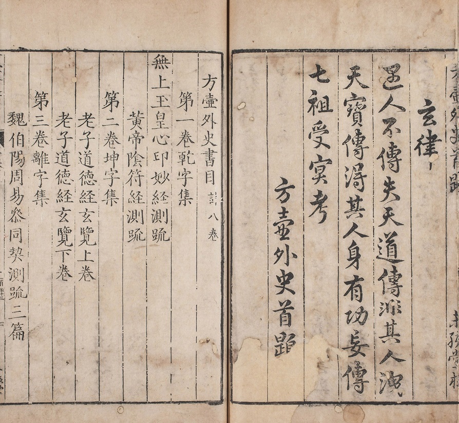 《方壶外史》是明代道教内丹丹法东派代表人物陆西星的著作集。初陆续刊成于明嘉靖末 (1566) 至万历庚辰年 (1580) 前后,有赵宗序。民国四年(1915),郑观应等人据明刻版排印,有郑观应、万启型等人序。